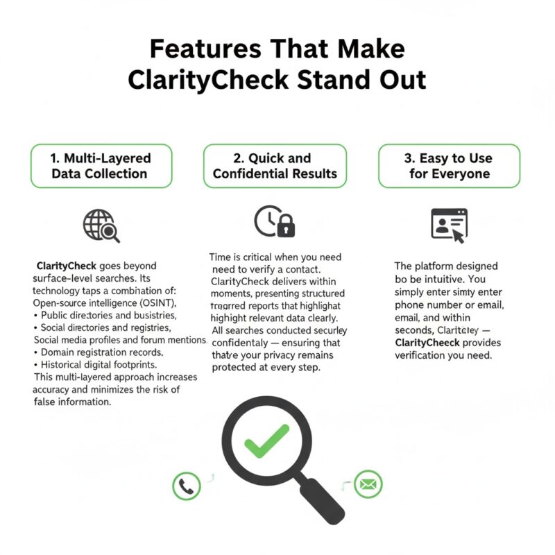 The platform is designed to be intuitive. You simply enter a phone number or email, and within seconds, ClarityCheck compiles and analyzes data. There’s no need for technical skills, which makes the service ideal for both individuals and businesses.